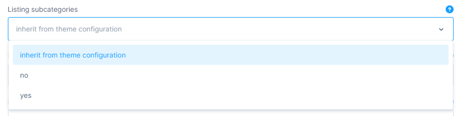 * This is the default option. In this case, the theme configuration decides whether the "Listing subcategories" are displayed or not.