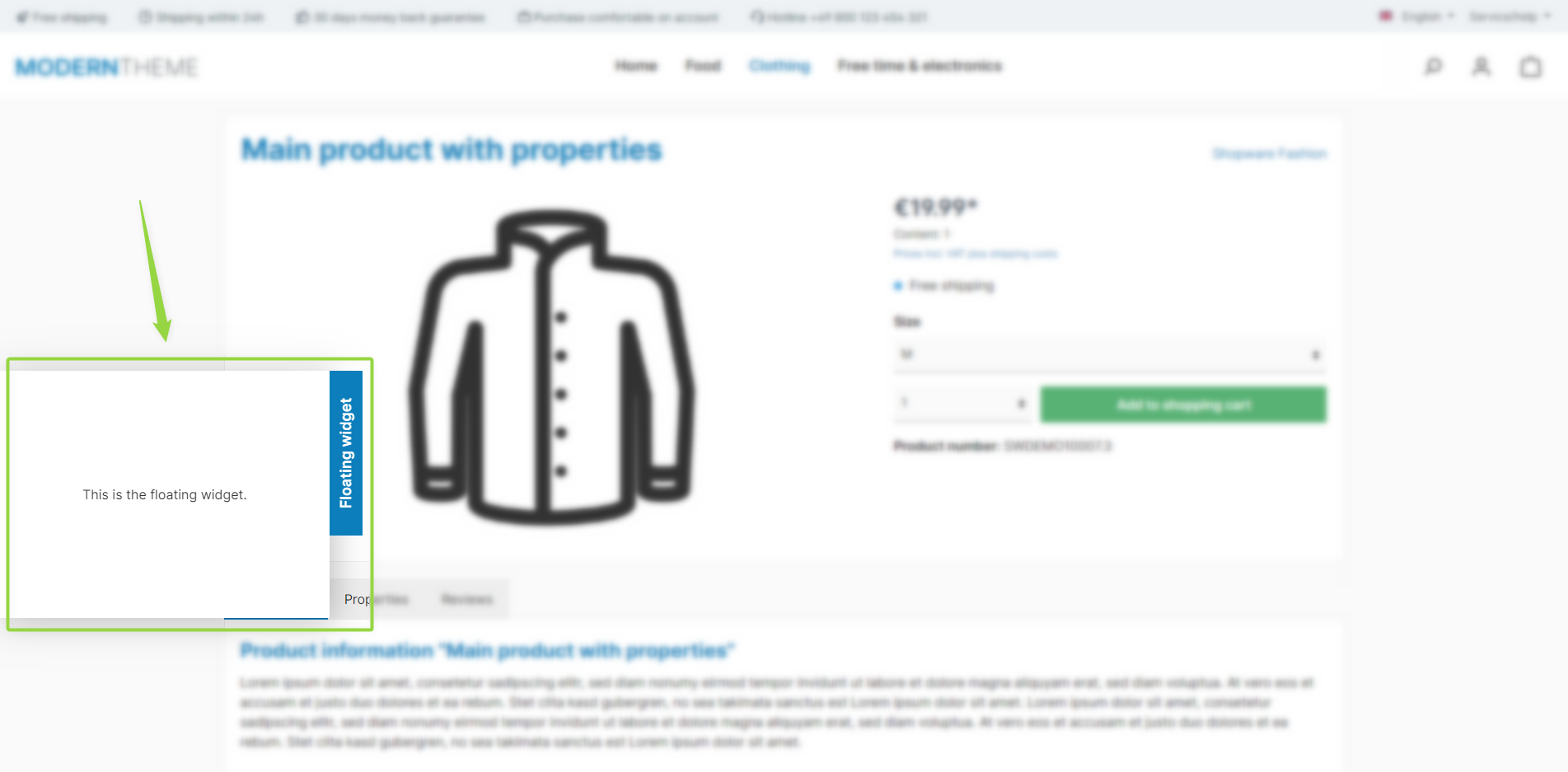 With ThemeWare® you can use the "Floating-Wideget" of our Shopware 5 themes in your Shopware 6 shop as well, for example to display contact information prominently.